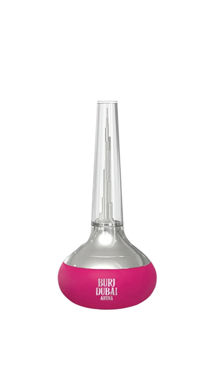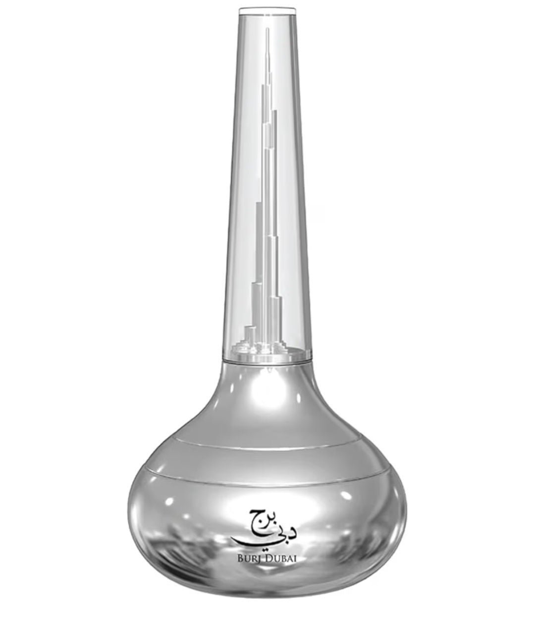 La fraganciaBurj Dubai (ahora Burj Khalifa) se asocia a perfumes árabes de lujo, como los de la marca Le Chameau, que suelen ser unisex, evocando grandeza con notas dulces (durazno, flor de cerezo) y exóticas (piña, oud), terminando en bases cálidas de almizcle y pachulí, diseñadas para representar la sofisticación y riqueza de Dubái.