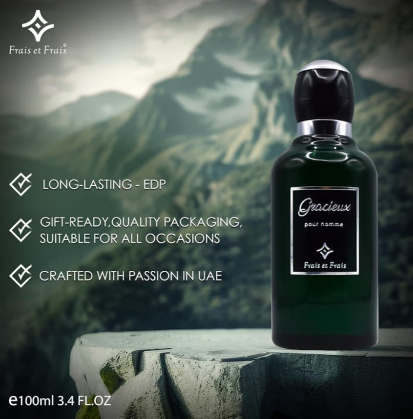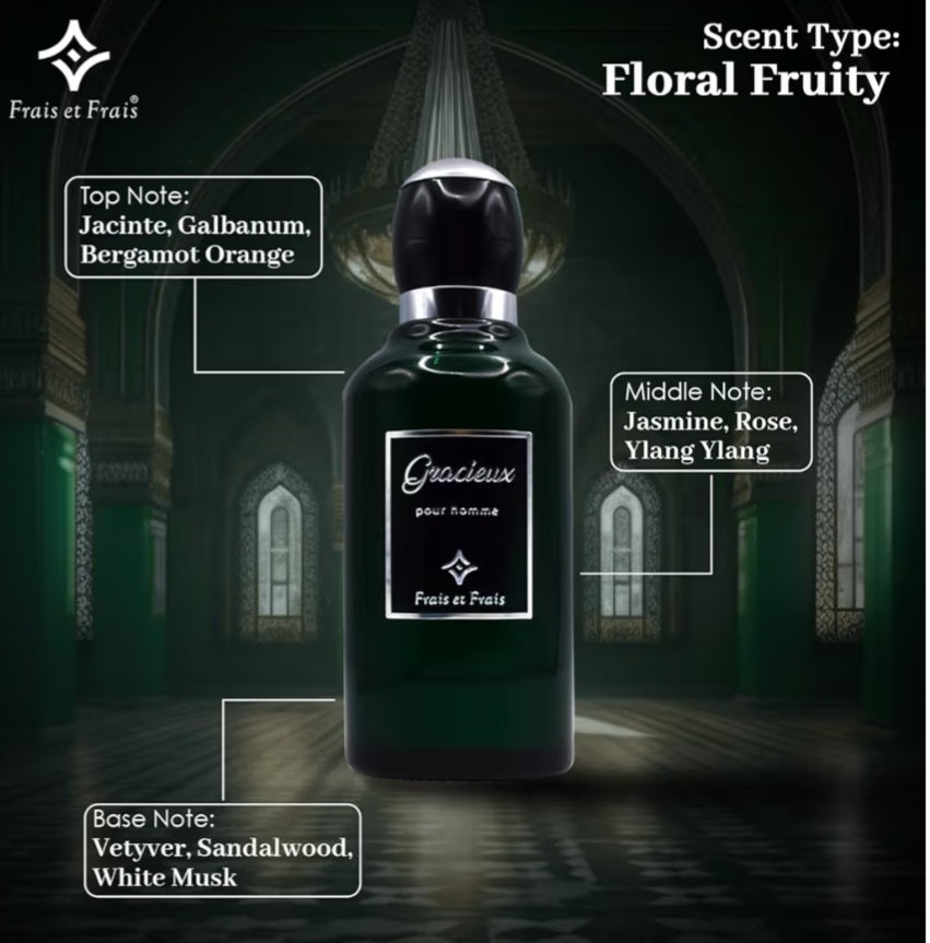 Frais et Frais Gracieux es una fragancia floral-frutal para mujer, descrita como elegante y encantadora, que combina notas cítricas (bergamota, naranja, limón) en la salida, un corazón floral (jazmín, rosa, ylang-ylang) y una base cálida y terrosa (vetiver, sándalo, almizcle blanco).
