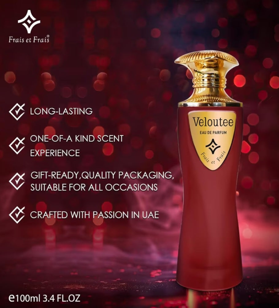 Frais Et Frais Velouté es una fragancia unisex, tipo Eau de Parfum, de la familia ámbar comestible (ambery edible), conocida por ser una opción lujosa y asequible con notas dulces y terrosas; se abre con azafrán y anís, evoluciona a caramelo y jazmín, y se asienta en una base de ámbar y musgo de roble, ofreciendo un aroma gourmand, cálido y sofisticado, ideal para climas fríos o uso nocturno.