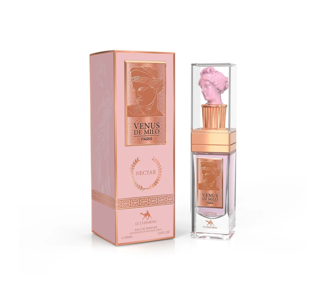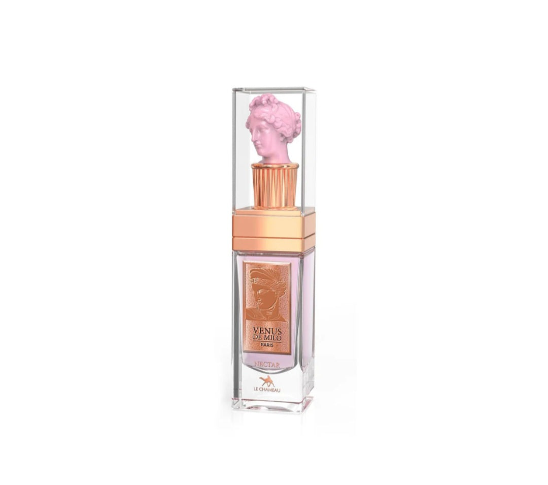 Venus de Milo by Le Chameau is a sophisticated gourmand fragrance launched in 2024 that masterfully balances sweetness with depth. The composition opens with vibrant top notes of raspberry, pineapple, coconut, and strawberry, creating an immediately inviting fruity introduction. The heart reveals a luxurious creamy accord featuring whipped cream, burnt sugar, and vanilla that adds richness and indulgence. The base settles into warm tonka bean, amber, and musk, providing a sensual and enveloping finish. This fragrance delivers a complete olfactory journey—from bright, fruity freshness to creamy sweetness to warm, lasting comfort—making it an ideal choice for those seeking a refined gourmand experience.